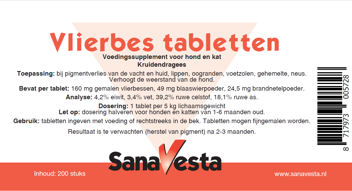 Vlierbes tabletten voor honden en katten 200-500-1000 stuks - Sana-Vesta